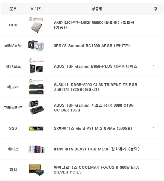 | CPU | AMD 라이젠 7-4세대 5800X | AMD 라이젠 9-4세대 5950X |