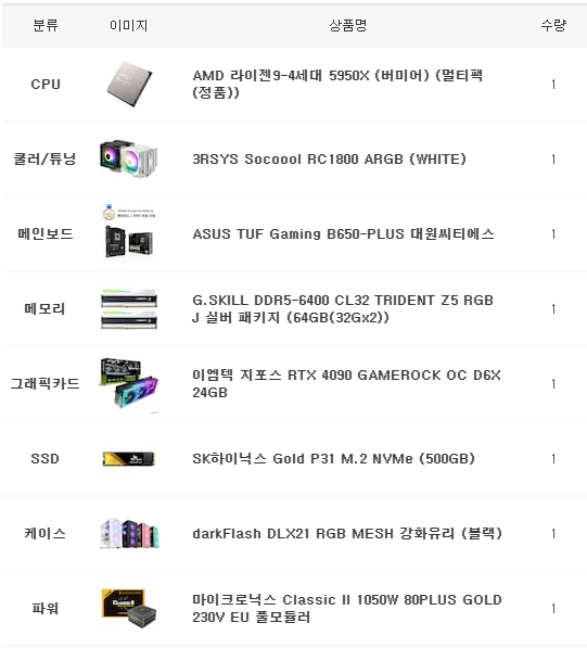 | CPU | AMD 라이젠 7-4세대 5800X | AMD 라이젠 9-4세대 5950X |