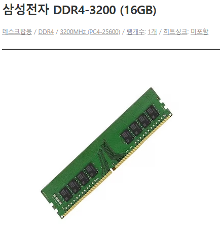 3200MHz(PC4-25600): PC4는 DDR4 규격이라는 말입니다. 그리고 뒤의 숫자는 대역폭으로 전송속도입니다.