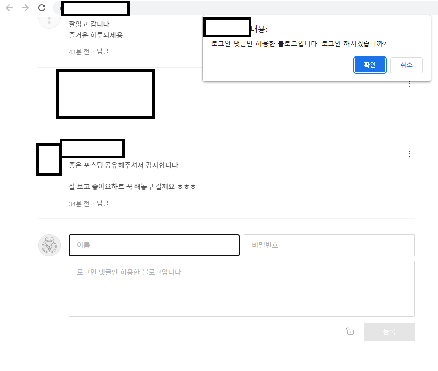 다른분의 블로그에 댓글을 달려고 로그인을 누르면