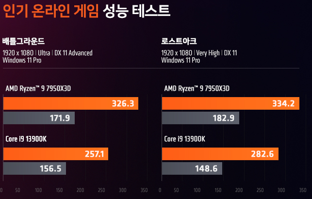 AMD 라이젠9-5세대 7950X3D는 인텔 i9 13세대보다도 게이밍 성능이 탁월합니다.