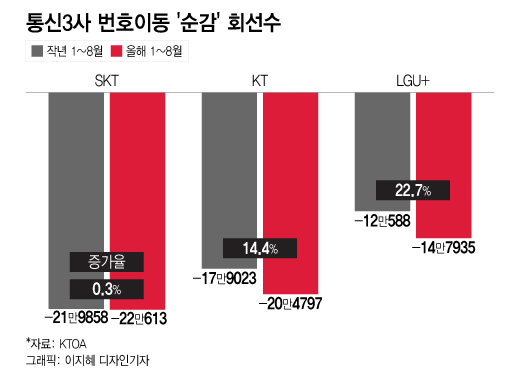 통신 3사의 가입자가 빠르게 감소하고 있습니다.